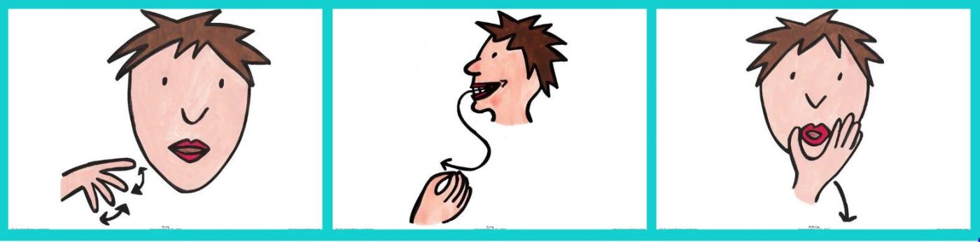 - sch (Formen des „sch“-Munds mit der Hand, um die Lautbildung zu unterstützen)