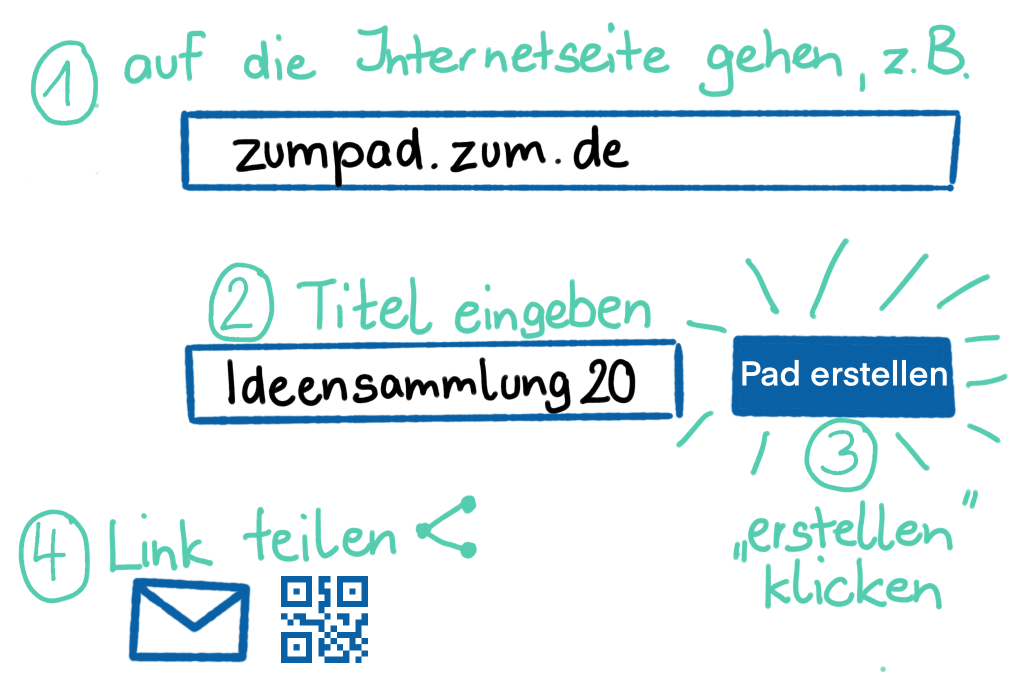 4 Schritte zum Erstellen eines Etherpads – das dauert 10 Sekunden und muss nicht einmal vorbereitet werden, kann direkt im Unterricht oder im Prozess geschehen