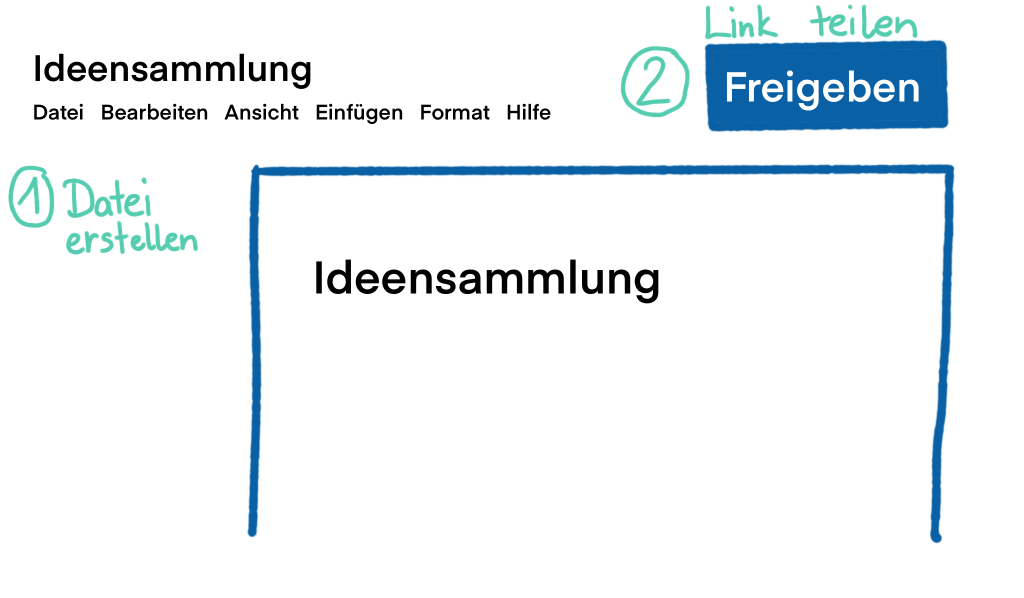 Ein komplexeres, kollaboratives Office-Dokument erstellen: Mit dem Office-Programm (z.B. Google Docs oder MS Office 365) die Datei erstellen und dann freigeben.