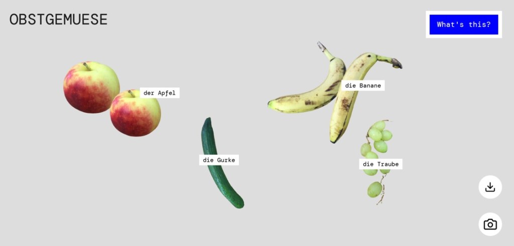 Als Lehrkraft erstellt man einen „strange.garden“ und teilt den Link mit den SchülerInnen. Diese öffnen ihn am besten mit einem Mobilgerät, das sie herumtragen können und eine Kamera hat: Sie fotografieren dann z.B. Obst und Gemüse. Das Tolle: Das Foto wird automatisch freigestellt und in den Garten hochgeladen. Danach kann man die Einzelbilder noch clustern, d.h. verschieben und Titel hinzufügen, z.B. zur Wortschatzförderung hier Wort inkl. Artikel sowie Oberbegriffe.
