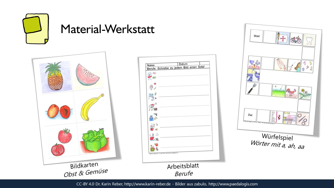 - Reber, K. (2021): Wortschatzförderung in Unterricht und Therapie: Reale und digitale Lernwelten verknüpfen. In: mitSprache 2, 5-24. https://paedalogis.com/wp-content/uploads/2021/07/mitSprache_2_21_Beitrag_Reber_web.pdf
