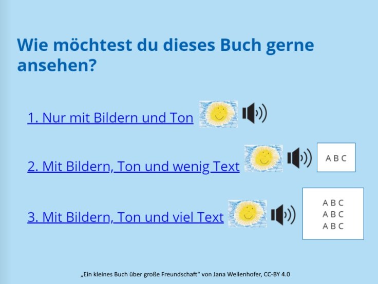 Dadurch, dass die Bücher heruntergeladen und weiter angepasst werden können, laden sie ein, eigene individuelle Leseversionen für die Klasse ohne Rechtskonflikt zu erstellen: Alle Bücher sind als „Open Educational Ressources“ (OER) unter freier Lizenz veröffentlicht, vgl. jeweils letzte Seite jedes Buches. Damit können Sie diese wiederum als Basis für eigene Individualisierungen und Differenzierungen frei verwenden, ganz im Sinne der Inklusion: Aus rechtlicher Perspektive ist diese Möglichkeit des Remixens der einzige Weg zu kollaborativen Adaption von Medien: Nur mit OER kann man eigene Anpassungen erstellen und darf diese dann auch wieder teilen bzw. an Kolleg:innen weitergeben. Auf diese Weise mögen im Sinne der Inklusion viele neue Lernchancen für Kinder entstehen!