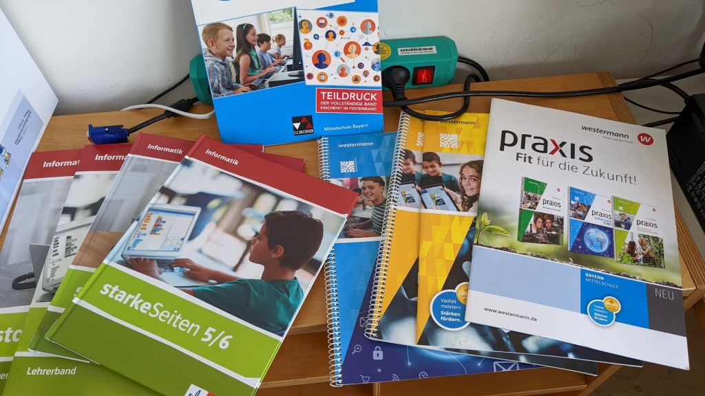 Für das Fach Informatik gibt es aktuell noch kein Lehrwerk speziell für die Förderschule. In der Reihe „Stark in …“ (Westermann) gibt es den Titel „Medien“, ein Buch zu Informatik ist laut Verlag noch in Arbeit. Ansonsten sind die Lehrwerke für die Mittelschule zumindest ein guter Leitfaden für die Lehrkraft: Es gibt z.B. „Informatik“ (Buchner), starkeSeiten (Klett) und „Praxis Informatik“ (Westermann)